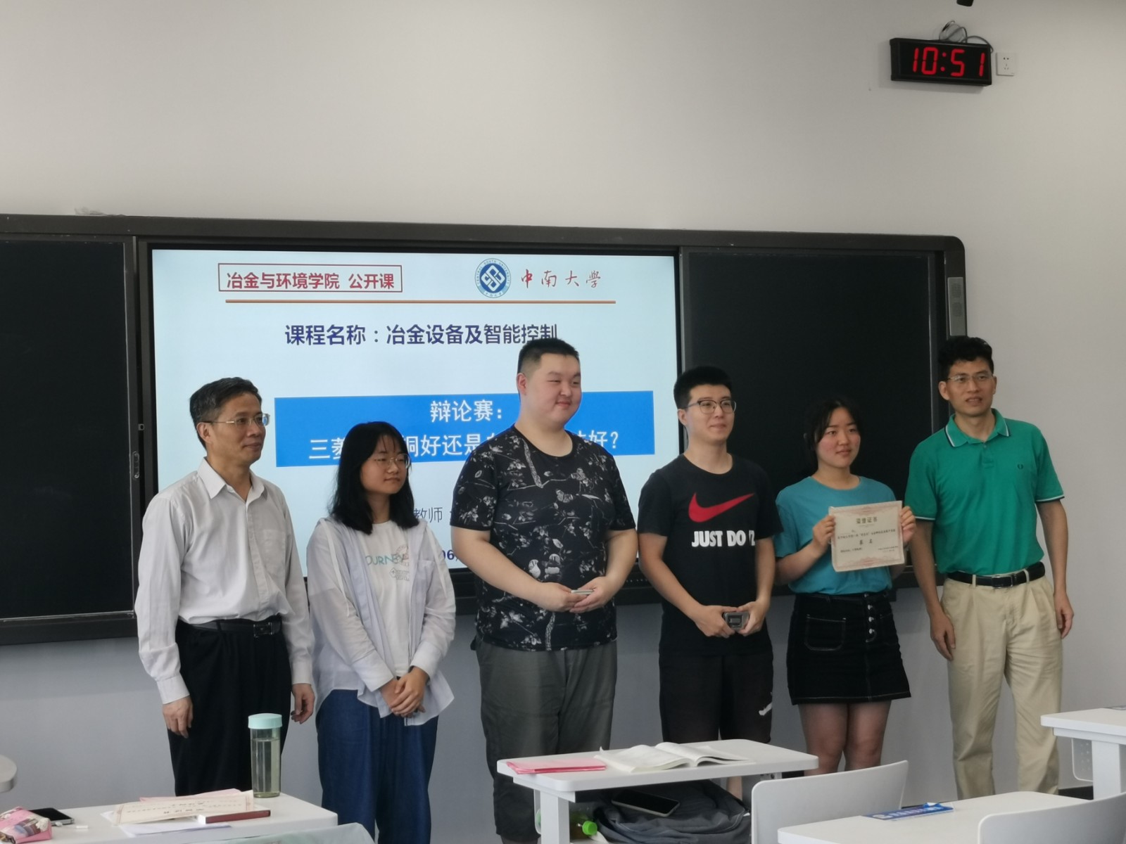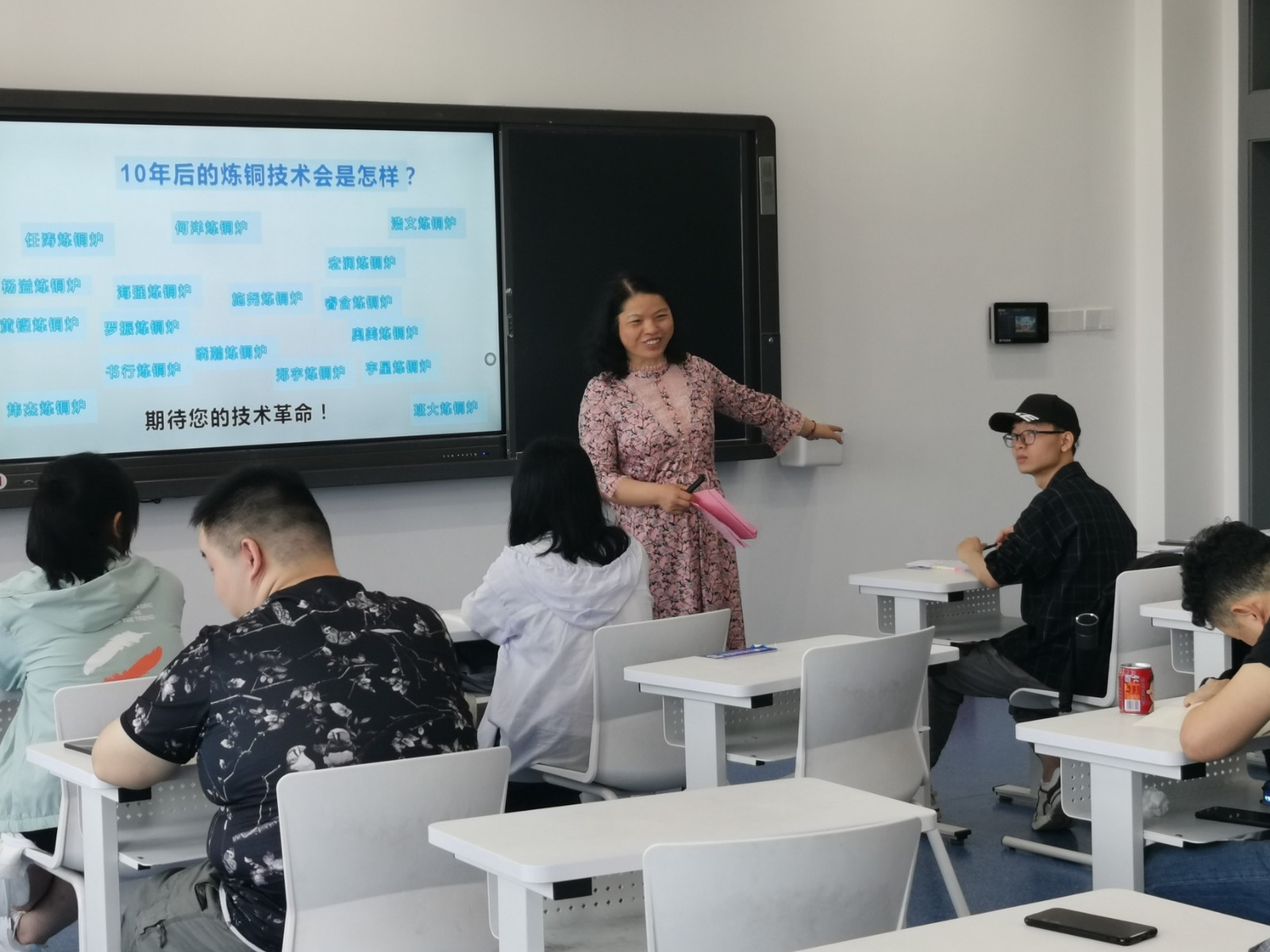 陈教授本次课堂主要是《火法冶金设备》中熔池熔炼部分内容的总结复习。课前,冶金1804班同学们做了较好的准备,课堂开始,学生分成两组以“三菱法炼铜好还是白银法炼铜好?”为主题进行20分钟的辩论赛,分别先从工艺、设备、控制、能耗和环保等角度进行开篇立论、辩论、自由辩论和总结陈词四个环节开展了激烈辩论,同学们都非常积极的参与其中。随后陈教授在归纳前面辩论的课程内容基础上,对两种火法炼铜工艺方法所采用的设备和技术进行对比分析,并向学生提出了“10年后的炼铜的技术和设备会是怎样?”的课后思考题。本次课堂以润物无声的形式融入了科学思考、团结协作、价值引领等思政内容,激发学生专业责任和时代担当,同学们纷纷表示虽然课前准备花了很多时间,但是学到了很多,受益匪浅。